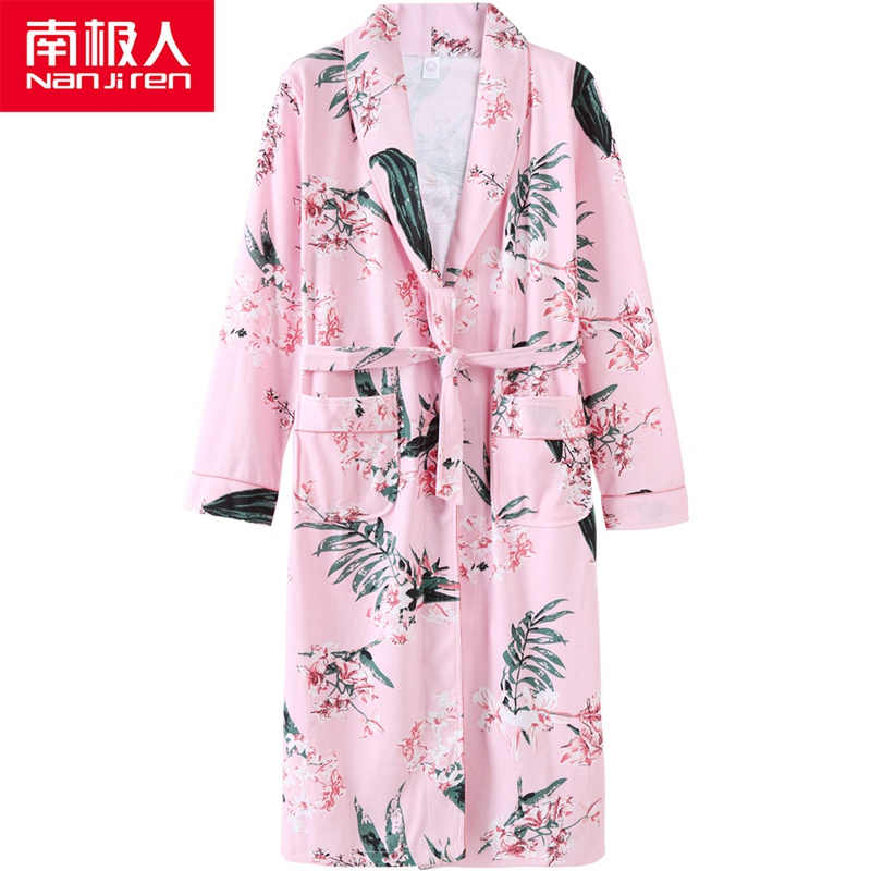 Pajamas women's spring and autumn cotton long-sleeved pajamas ladies cotton homewear thin section elegant temperament plus size bathrobe