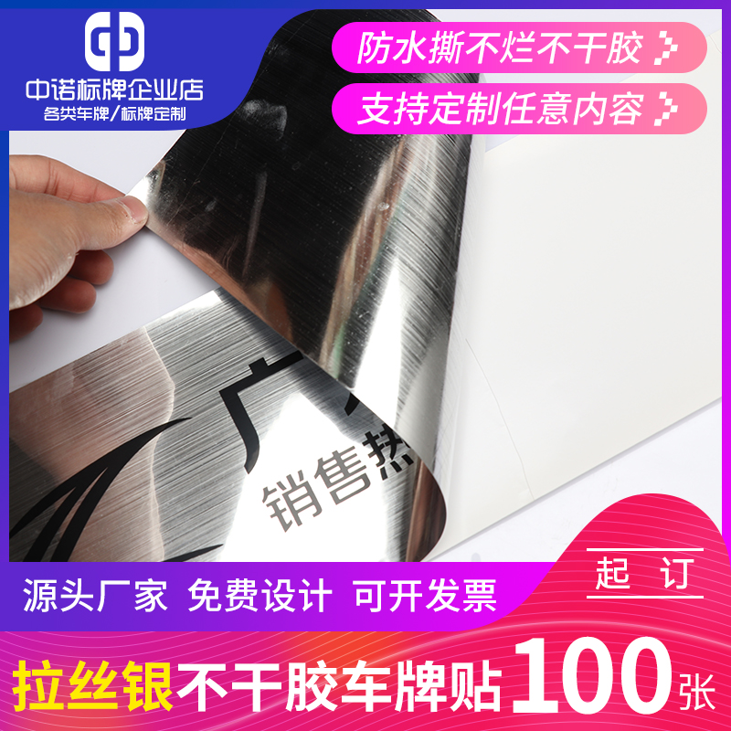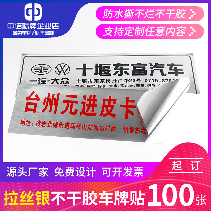 Customized car 4S shop brushed gold and silver PVC auto trade car dealership advertising license plate waterproof self-adhesive sticker customization