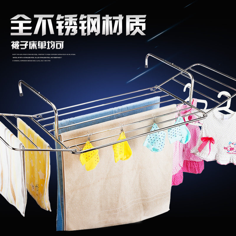 Stainless steel window balcony drying shoe rack Anti-theft windowsill artifact hanging buckle hanger Folding telescopic drying clothes rack