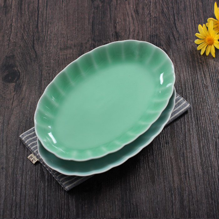 Oujiang celadon fish plate 12-inch large fish plate ceramic plate home hotel set table steaming plate plate - Taobao