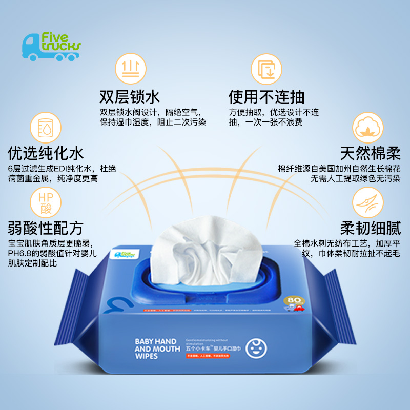 Five small trucks of baby wipes 80 pumping 9 large packaging special new baby baby wet wipes for hands and mouth