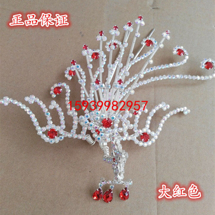 Drama opera head face The more the drama of the red bride's head decorated with wood and large horizontal and phoenix Peking opera head face film and TV headwear