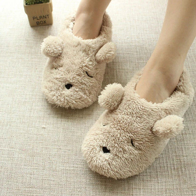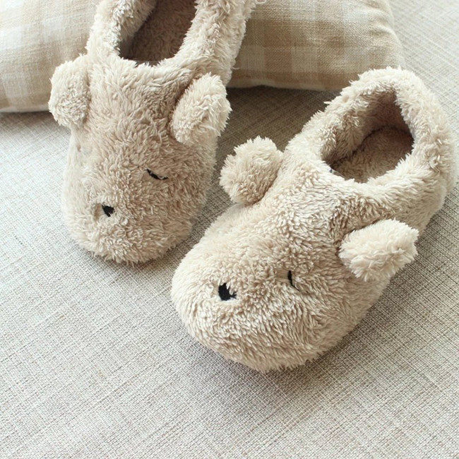Fall and winter season cute cartoon plush home anti-slip room floor warm lady cotton slippers heels