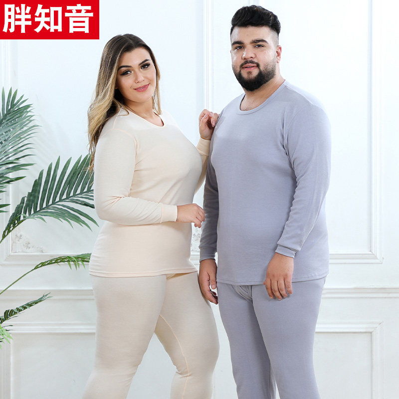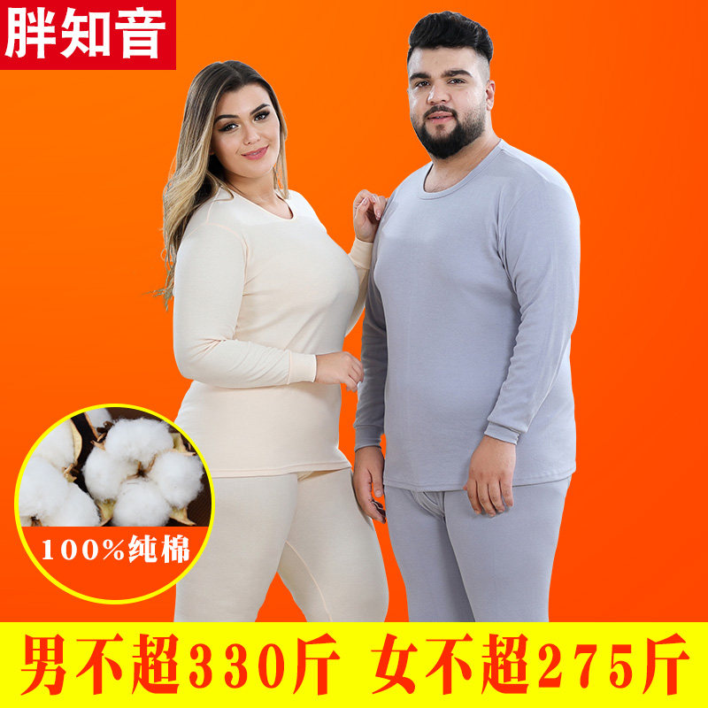 Fat informed male and female middle aged plus fat increase code low round collar pure cotton combed cotton underwear for autumn clothes sanitary pants suit
