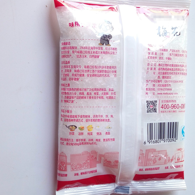 99 Plum Blossom Good MSG 100gX10 Bag Pure Grain Long Grain No Salt Fried Vegetable Cooking Seasonings