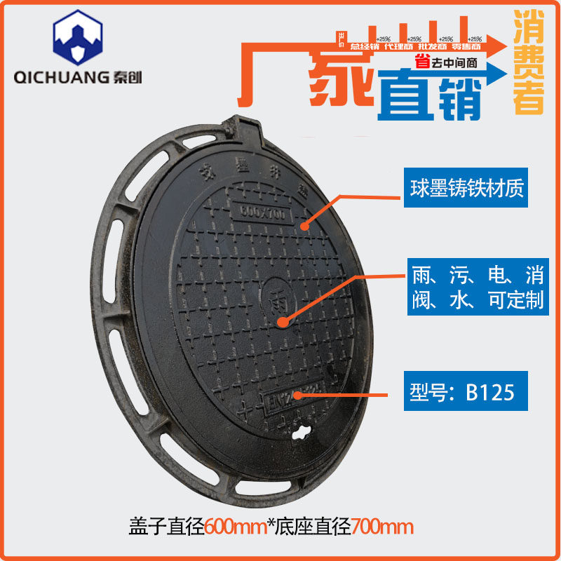 Ductile iron round sand manhole cover 600 sewer rain sewage weak power valve Septic tank fire light and heavy type