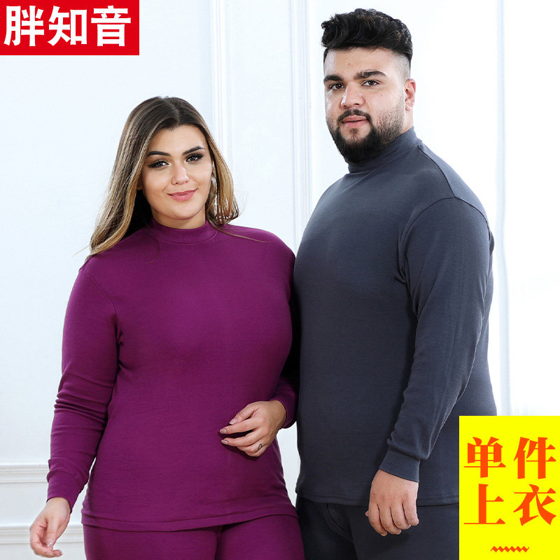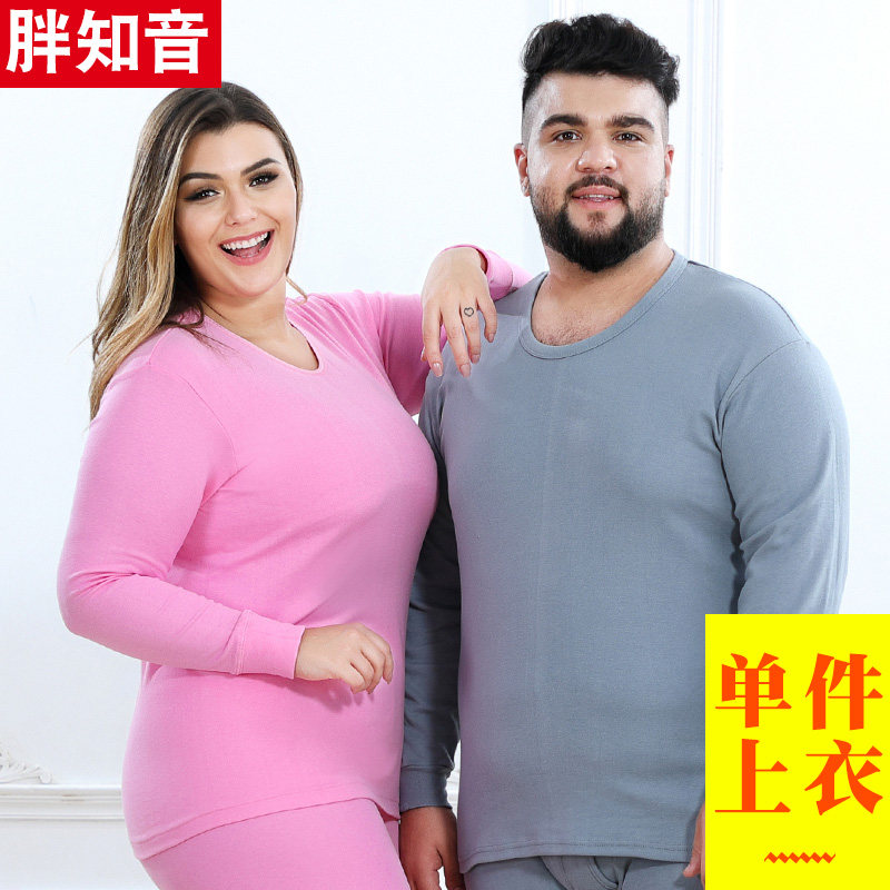 Fat bosom friend men and women middle-aged and elderly plus fertilizer plus size low round neck pure cotton combed cotton underwear autumn clothes one-piece top
