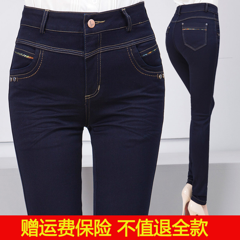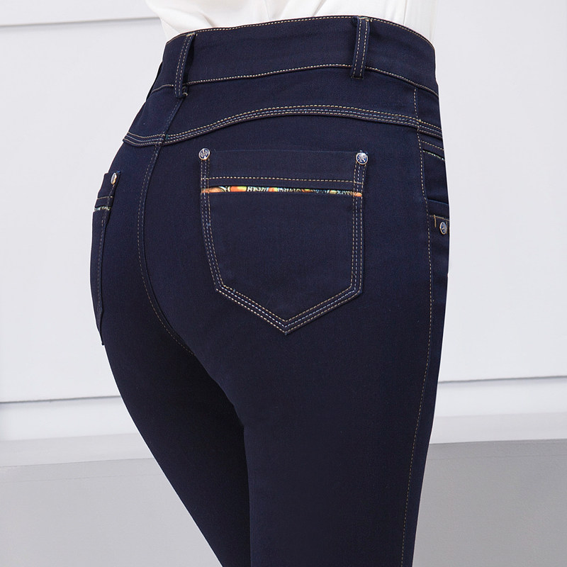 2022 Spring and Autumn New Middle - aged Female High Waist Flag Autumn Winter Jeans Woman Middle - age Mom Pants