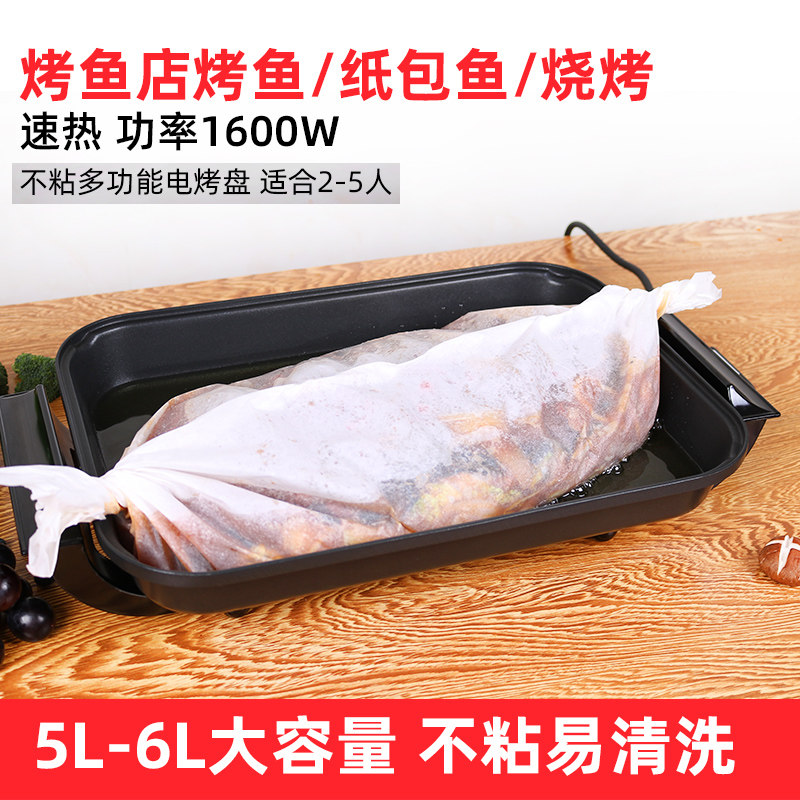 Grilled fish stove Commercial paper-wrapped fish pot Multi-function non-stick electric baking plate Household barbecue pot Paper-wrapped fish electric pot