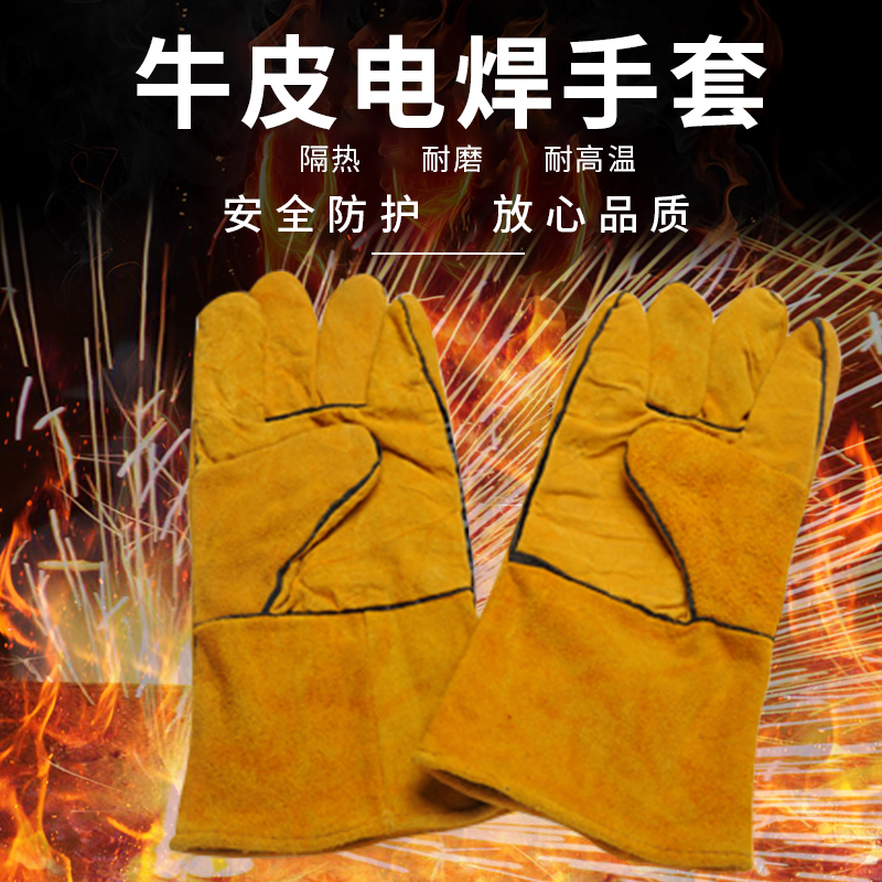 Welding gloves cow leather high temperature long stairs soft long sleeve yellow labor insurance thickness industrial canvas welder