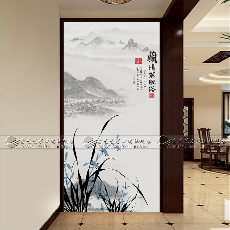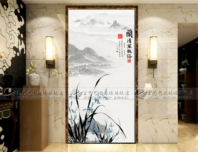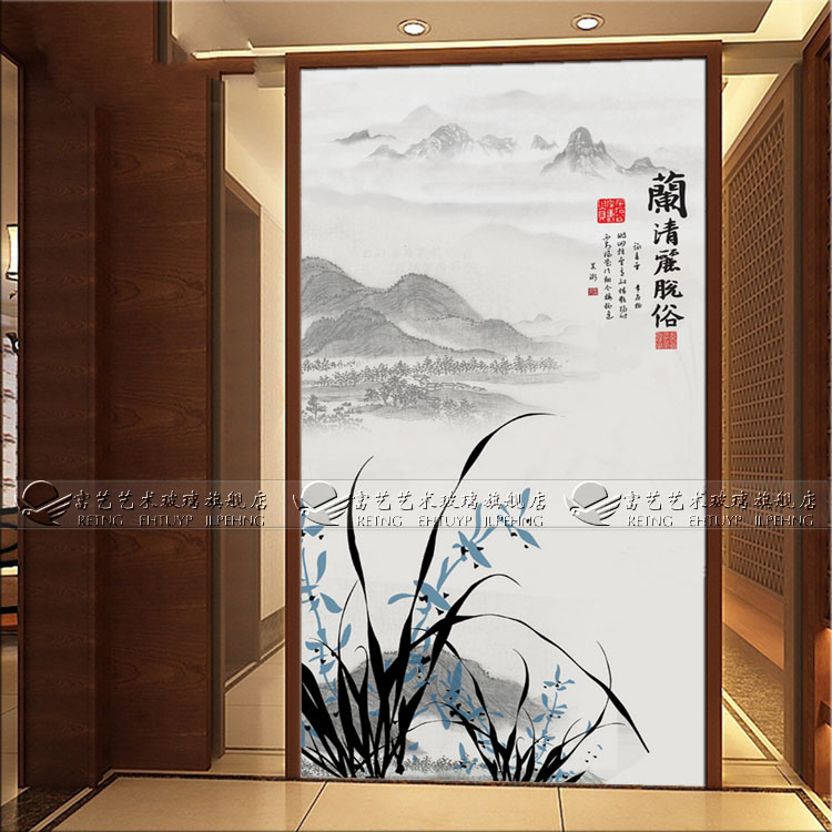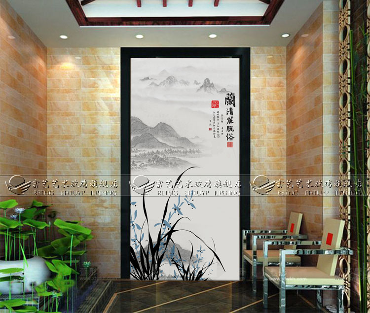 Manufacturer Direct Marketing Art Glass Import Material Steel Chemical Engraving Genguan Partition Screen Aisle Orchid Genguan Background