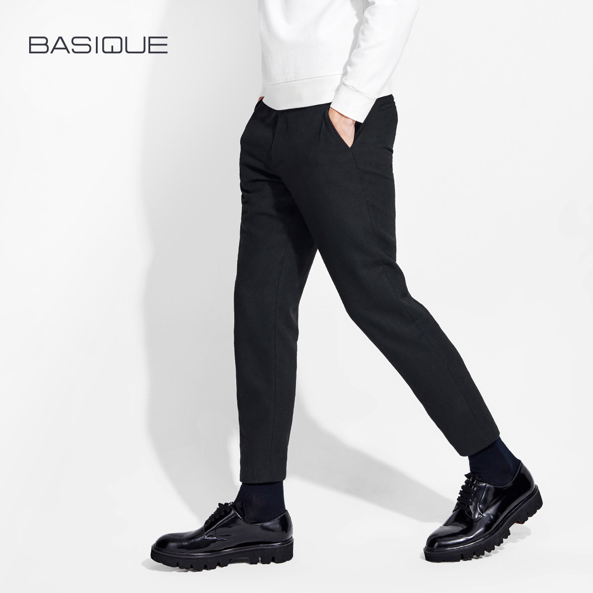 Yuan Ben autumn nine-point wool trousers Men's slim small feet casual straight loose pants men's thick casual pants