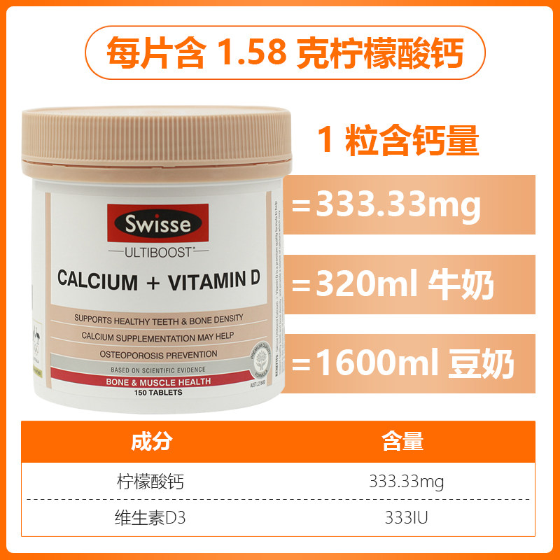 Australia Swisse Calcium tablets Vitamin D in the elderly, adults, young pregnant women, Vitamin D calcium citrate VD150 tablets