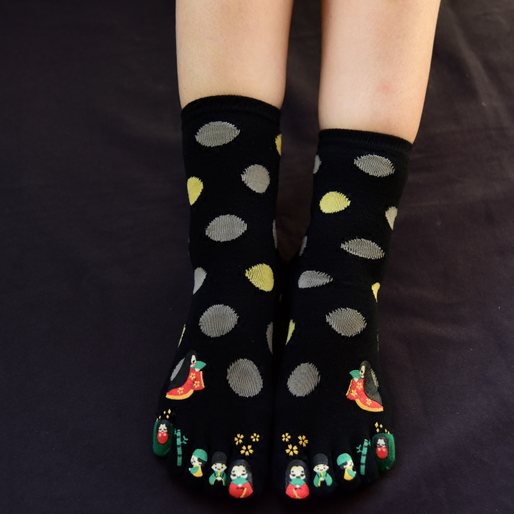 Foreign trade five-finger socks women's pure cotton early autumn mid-tube dispensing cotton cute dot cartoon Japanese toe socks