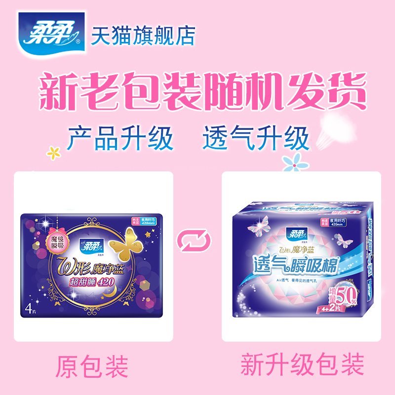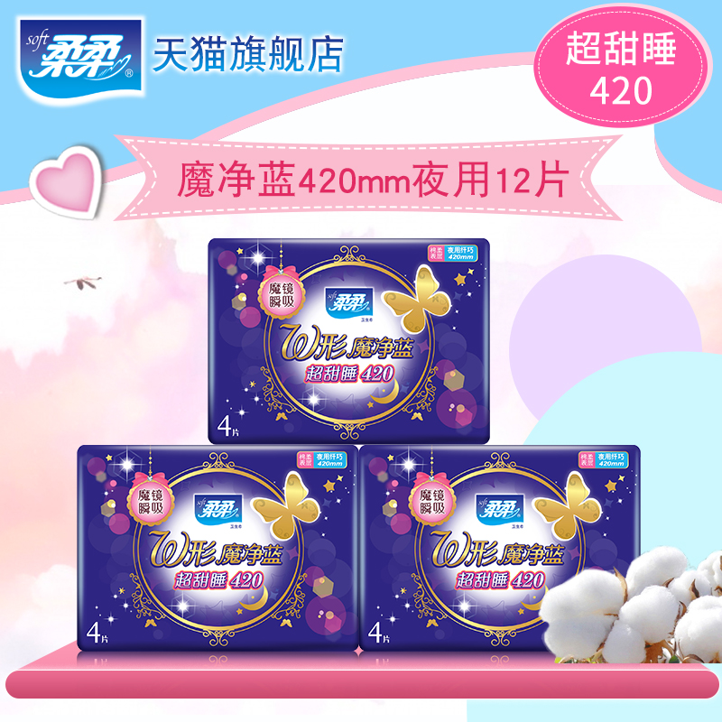 Flexo 420 ultra-long cotton soft and fleeting anti-side leakage night with no fluorescent sanitary cotton increment fit 4 2 pieces 3 packs