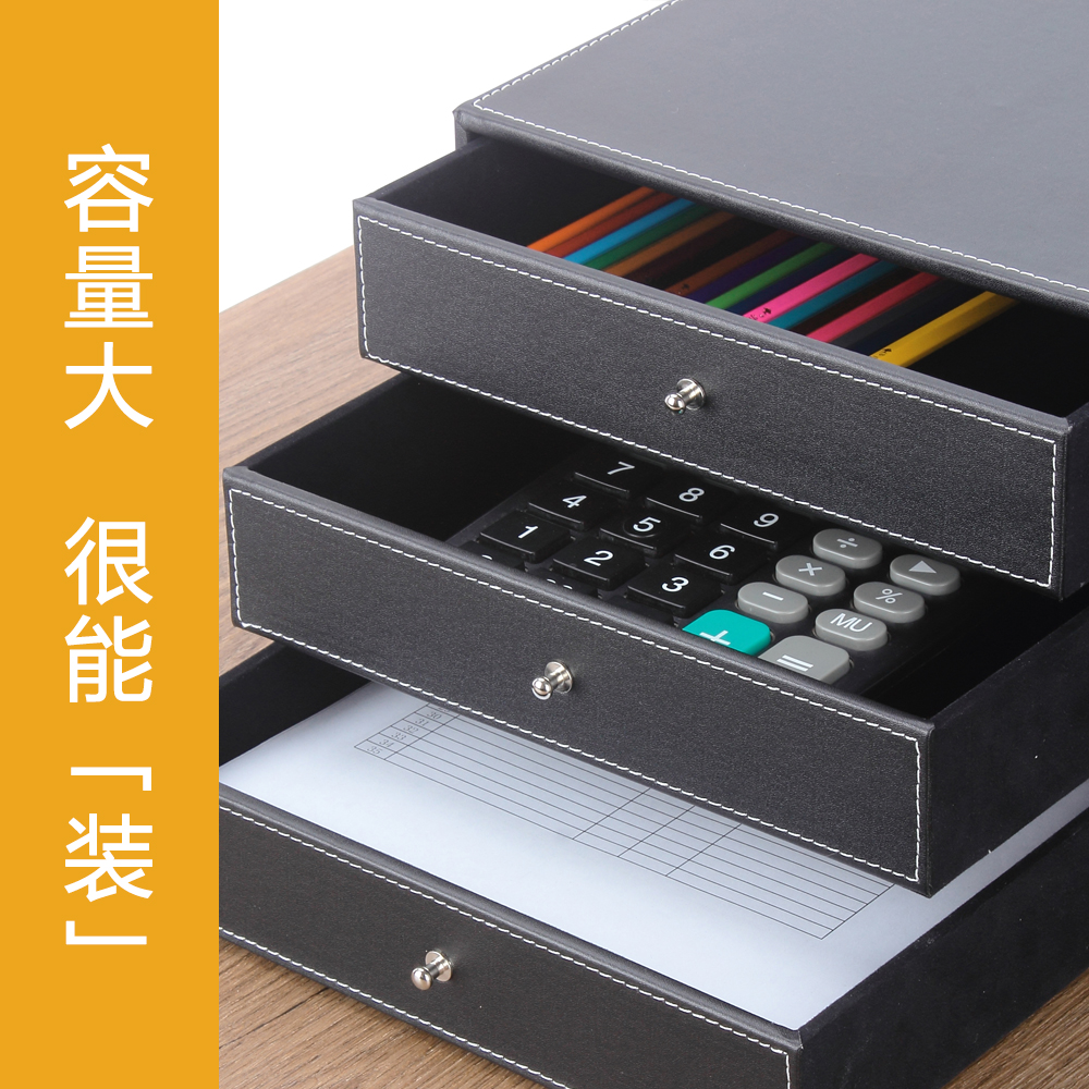 Multi-layer business leather A4 desktop filing cabinet three-storey drawer information cabinet sorting classified filing cabinet office supplies