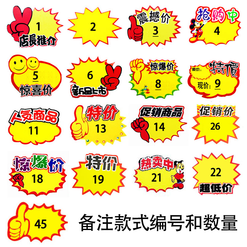 100 BLAST STICKER BIG BLANK SPECIAL PRICE CARTOON SUPERMARKET MALL MARK PRICE TAG PROMOTIONAL LABEL POP ADVERTISING PAPER