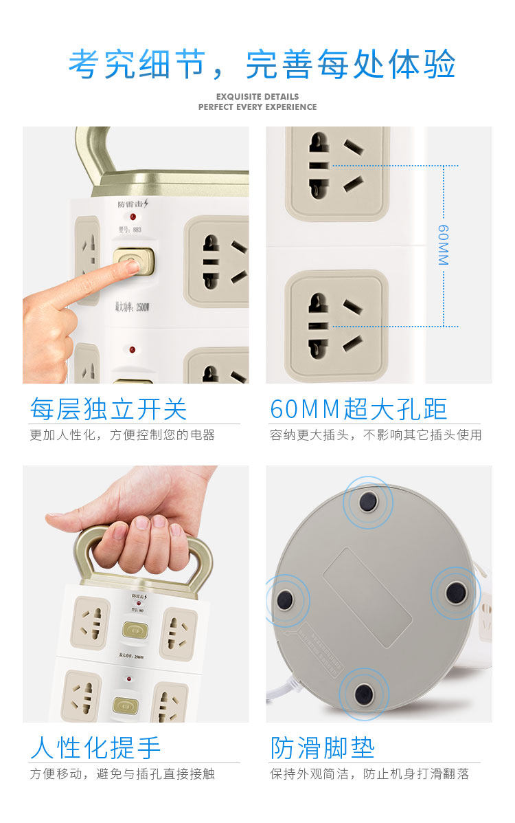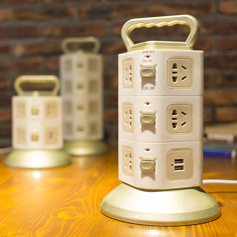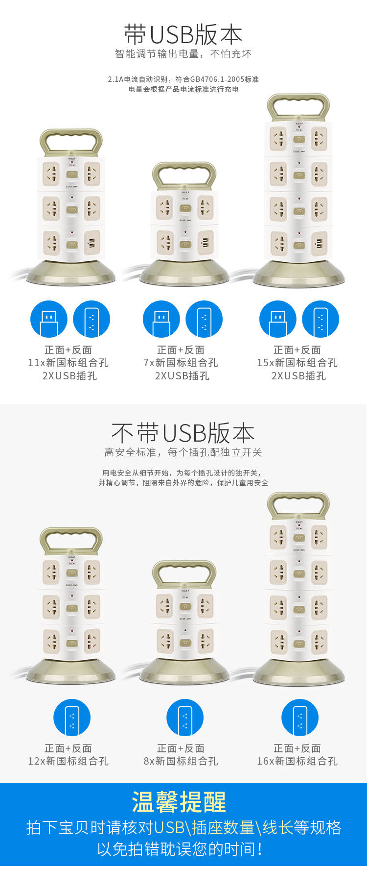 Vertical socket row plug household multi-function extension cord intelligent charging power multi-hole wiring board with usb socket