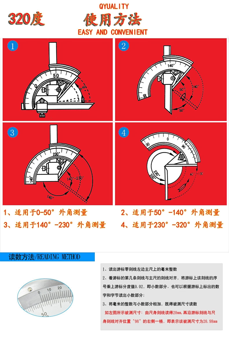 Ha Shen Ling universal angle ruler 0-320 degree Vernier angle ruler universal angle gauge angle gauge protractor