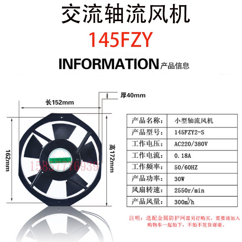 145FZY2-S Axial 220V heat dissipation fan 172x152x38mm Electrical cabinet blower copper core suction row
