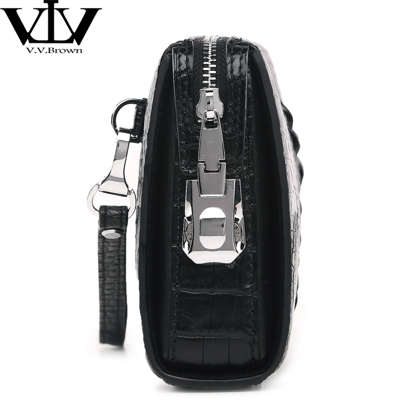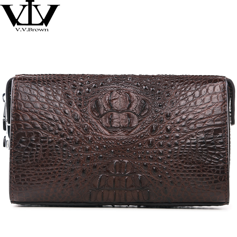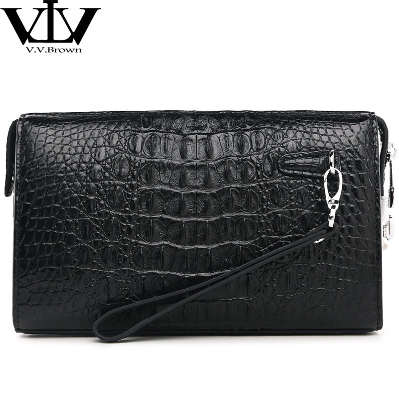 V V Brown men's handbag crocodile leather leather business all-match large-capacity combination lock hand bag clutch bag