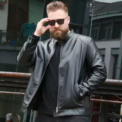 Yum Fox large size leather men's motorcycle leather jacket men's fat spring and autumn coat fattening fat men's clothing