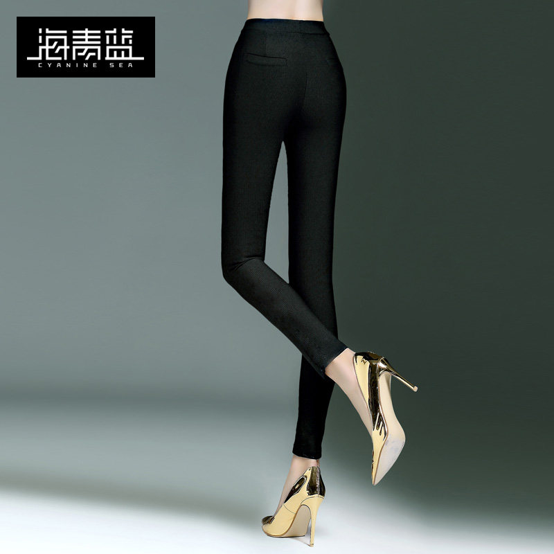 sea blue 2021 autumn new black tight slim small pants fashion trend thin pencil pants women 6351