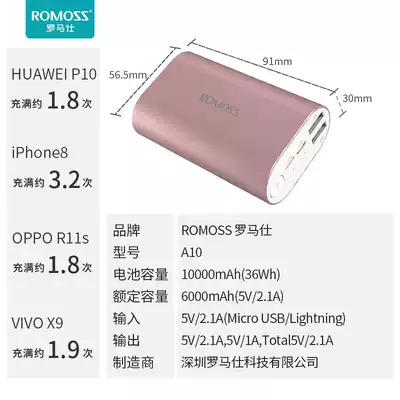 ROMOSS ROMOSS 10000 mAh Dual USB mobile phone Universal mobile charge Metal Mini Mobile Power Supply