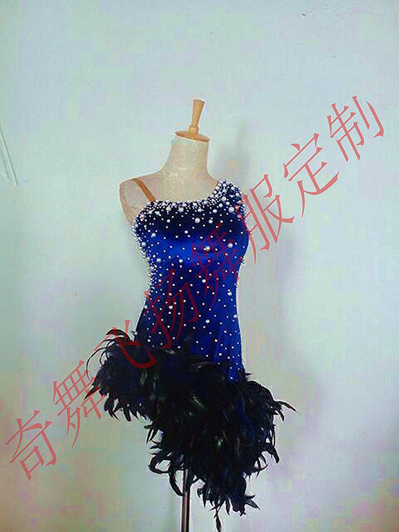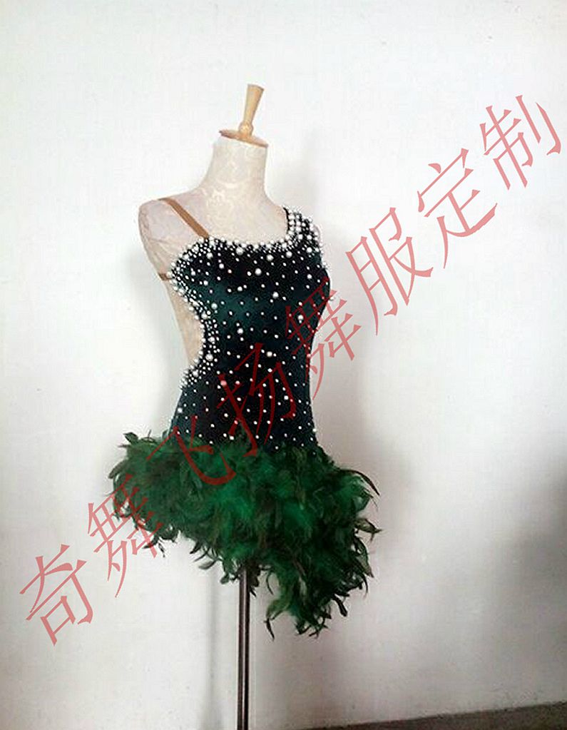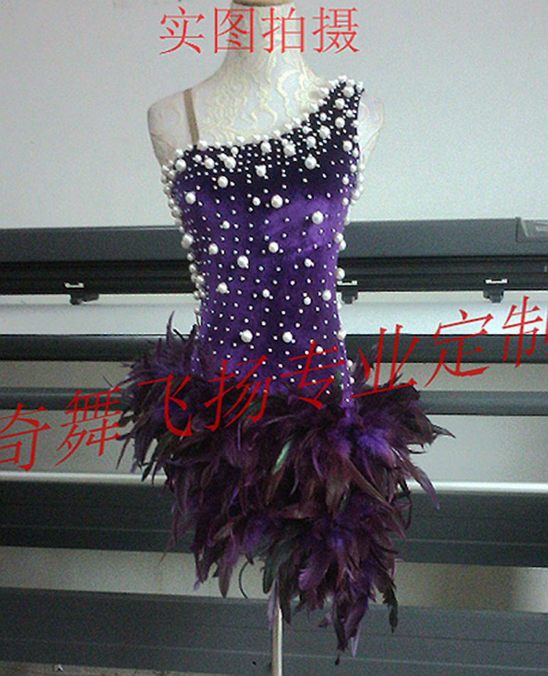 New latin dance costumes competition costume pearl feather velvet latin dance costume custom