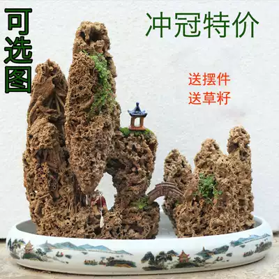 Natural absorbent stone rockery bonsai water stone combination viewing town house strange stone rock original stone air humidification gift