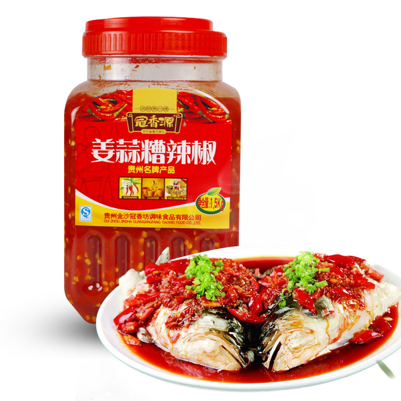 Crown Spice Source Ginger Garlic Mess Chili 1 5kg Guizhou Teryield Acid Hot Chili Peppers Chopped Pepper Fish Head Seasoning Farmhouse Homemade