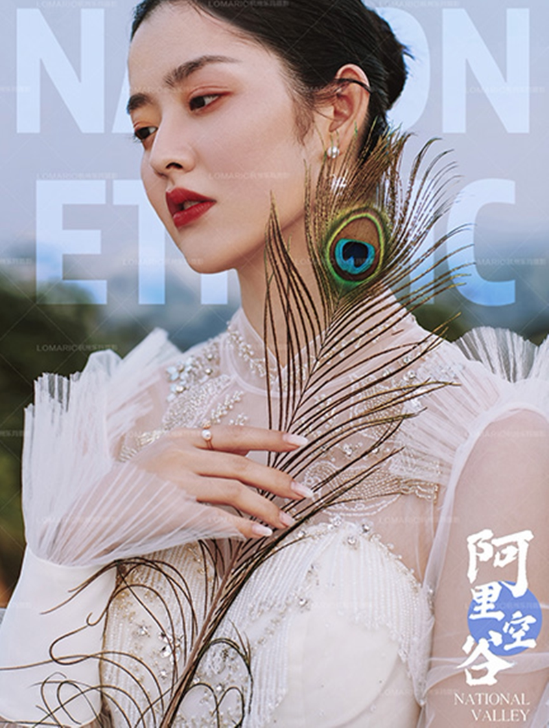Studio personality creative beauty private room photo adult photography props travel shooting location holding pure natural peacock hair