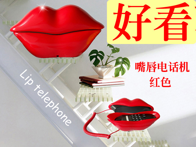 Creative Lips Telephone with Rope Seating Machine Fixed Telephone Mini Cute Personality Office Home Electric Cable Telephone