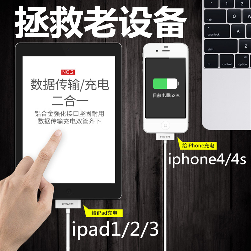 Pinsheng Apple 4 data cable iPhone4s charging cable four mobile phone charger head ipad2 tablet ipad3 wide mouth fast charge iPod extended punching wire
