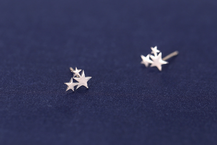 New Han - Edition ear decoration 925 pure silver needle three pentagonal star nails female anti - allergic trim
