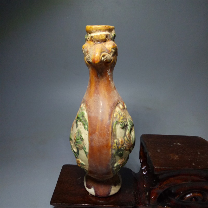 Tang Sancai carved figure pattern phoenix head pot antique to do old Tang Dynasty unearthed ancient porcelain antique antique collection