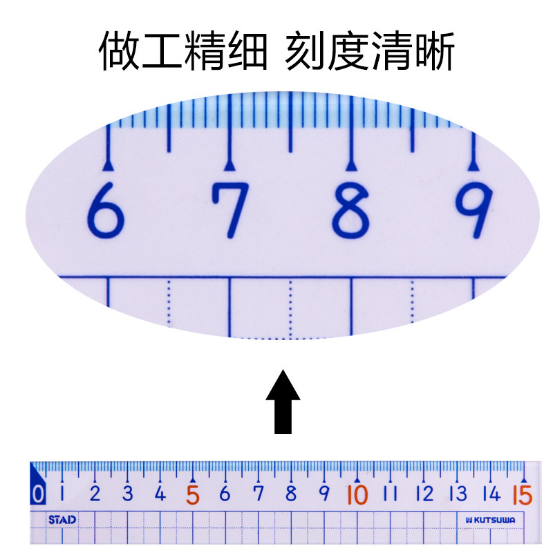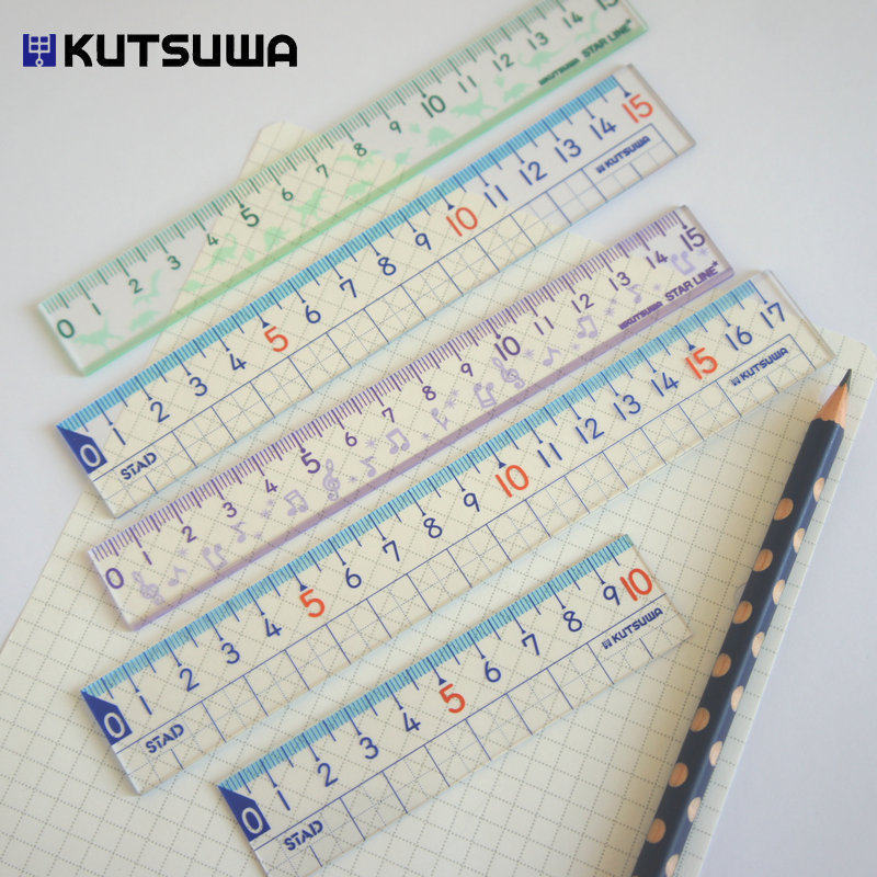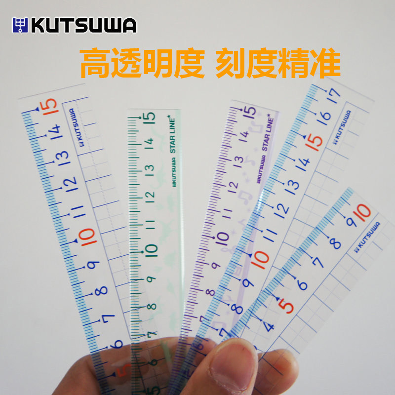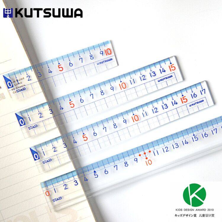 Japan imported kutsuwa elementary school student ruler high transparent precision checkered ruler 10cm Short ruler portable 15cm