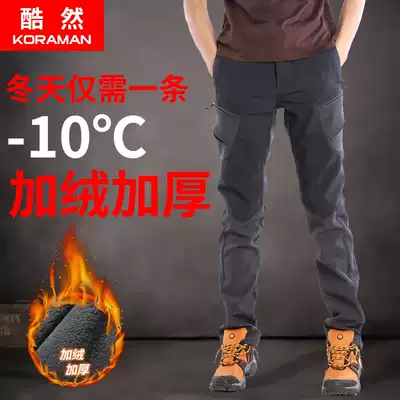 Outdoor men's assault pants autumn and winter plus velvet padded soft shell ski pants waterproof windproof pants men