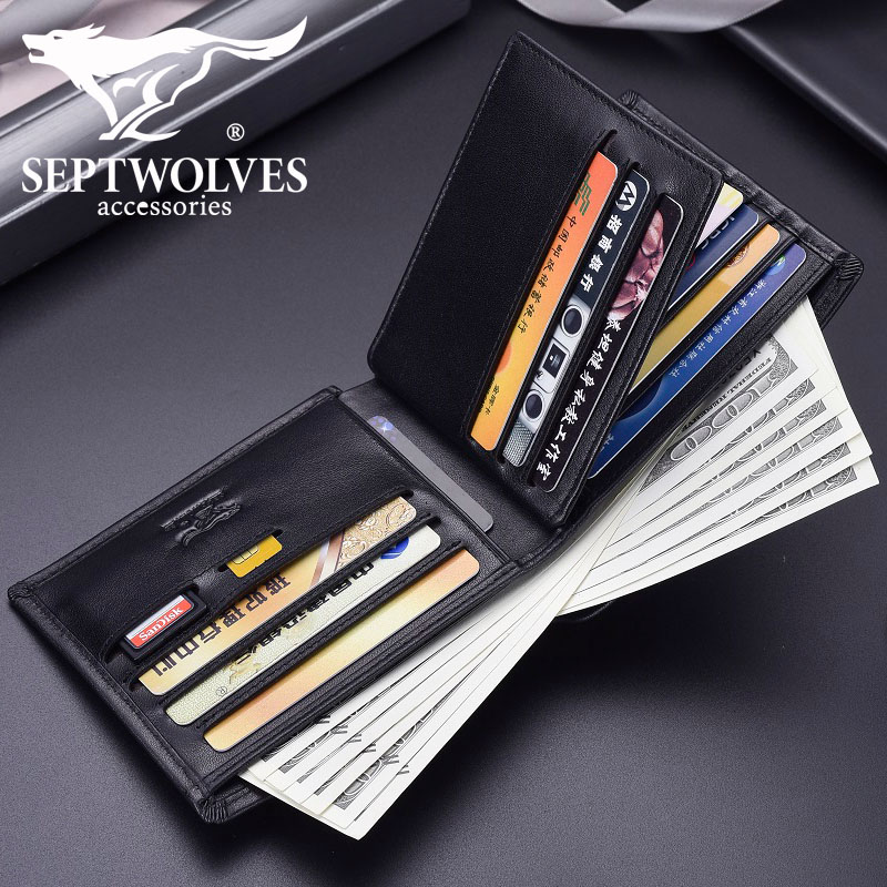 Seven Wolf Wallet Men Short Card Pack Three-fold One Pack to Drive License Leather Claim with Driver License 2-in-1