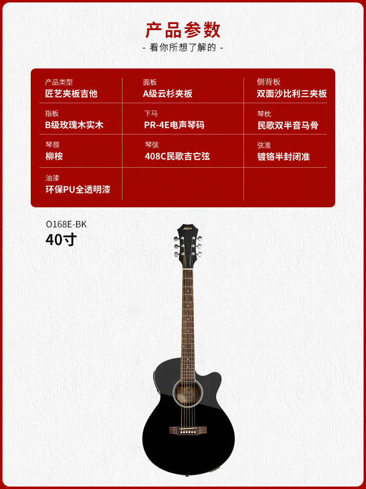 Red cotton electric box folk guitar O168E beginner novice entry dedicated 40 inch male and female students advanced exam