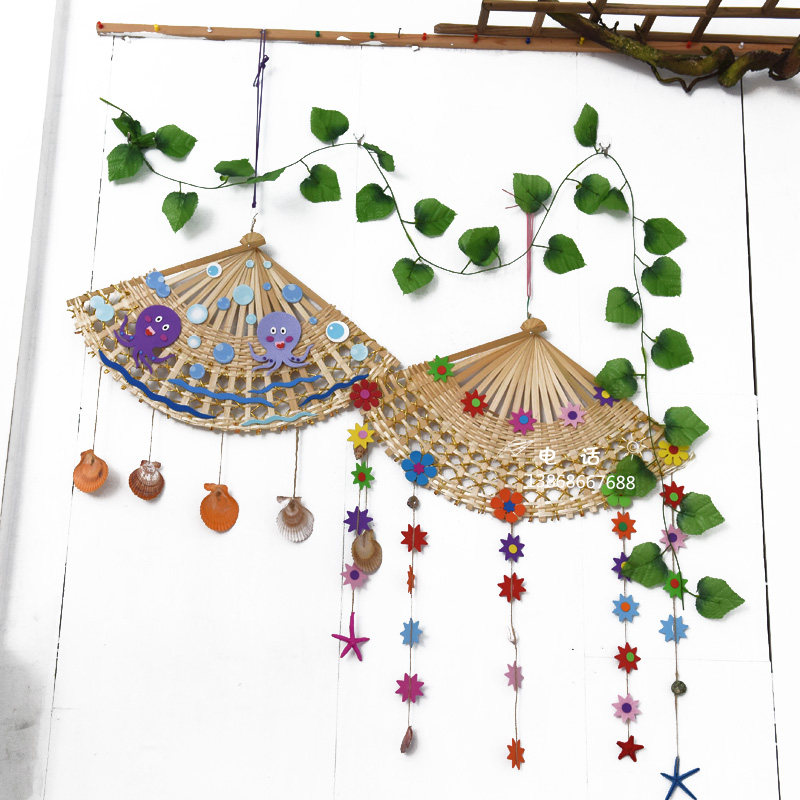 Bamboo fan bamboo fan pendant kindergarten air corridor environment layout diy handmade ethnic style dress