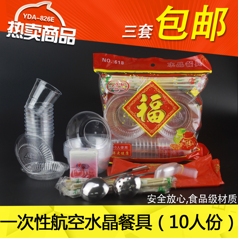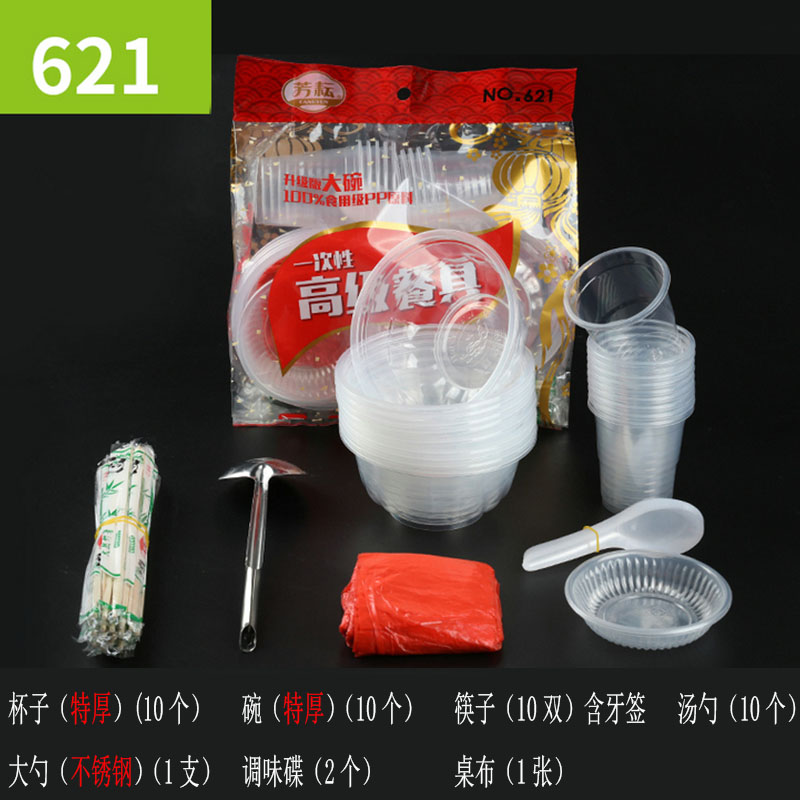 Disposable bowl chopsticks set thickened tableware home wedding banquet Barbecue Bowl chopsticks spoon Cup dish 10 people
