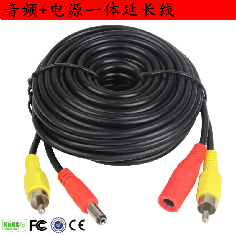 Vehicular monitoring audio and video power finished line monitoring special pick-up audio and video power integrated line AV connector