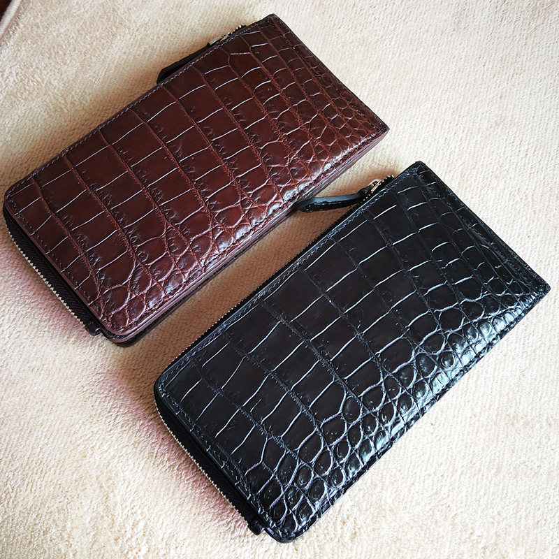 Crocodile leather card bag men's multi-card long wallet zipper business leather multi-function wallet men's bag