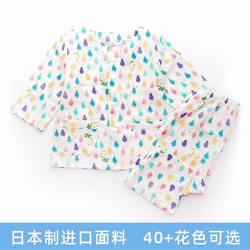 Japan system of imported gauze tung people handmade custom children's sleeping clothes baby double yarn pyjamas home clothes suit