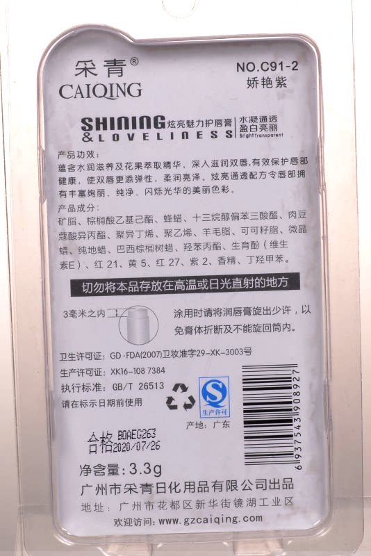 Take the bright and bright charm Pale Water Condensed through nourishing and waterproof Pale Lip Balm Cream New C91 lipstick