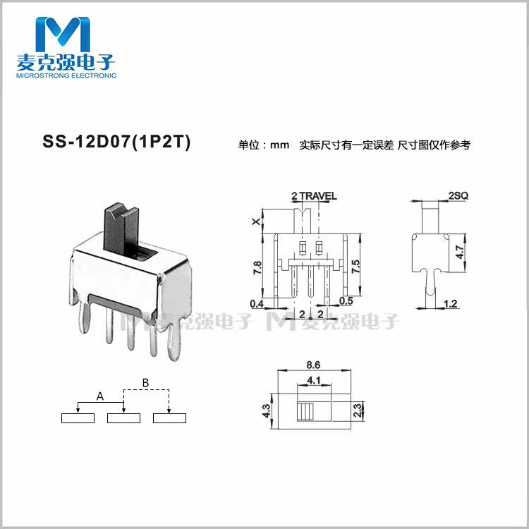 Toggle switch SS12D07VG2-7 shank high 2 3 4 5 6 7mm with bracket 2 stalls 3 feet straight shank switch