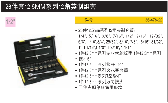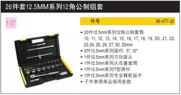 Stanley 26-piece 12 5MM12 Angle metric SOCKET SET 86-477 478-22 Maintenance ratchet WRENCH