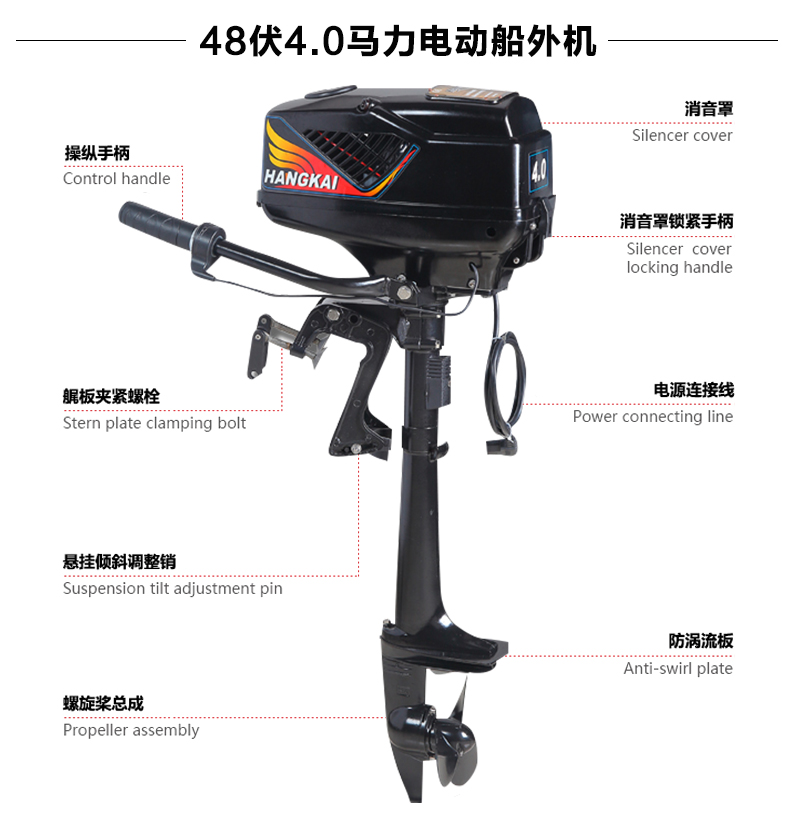 Hangkai Marine propeller electric 12v brushless rubber boat motor propeller hanging pulp small plastic outboard machine