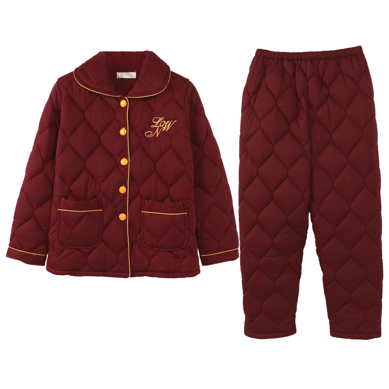 Nanjiren winter three-layer thickened quilted pajamas women's pure cotton home service women's long-sleeved cotton autumn and winter cotton jacket set
